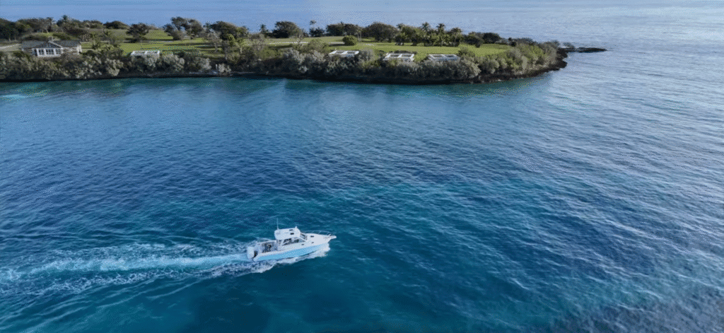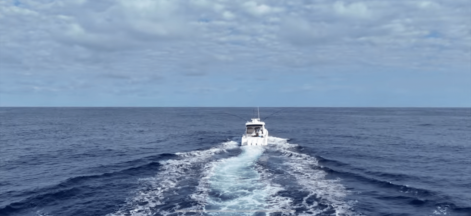 Additionally, it has a 7.5 KW generator providing dual zone air conditioning and heating, Starlink satellite communication, extended sun shade, battle saddle with rocket launcher, six person life raft, Raymarine electronics including radar, fully automatic toilet, and refrigeration and freezer storage for all food and drinks.