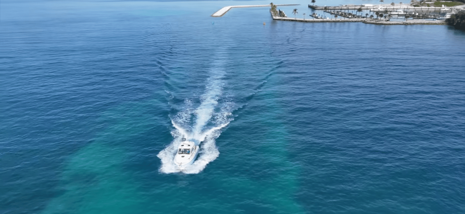The Ramble On is a 2021 Boston Whaler Conquest 345 equipped with triple 400 horsepower Mercury Verados.